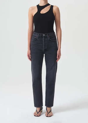 Crafted in our signature low stretch denim, this classic high rise straight features a slim leg designed to elongate your frame. Pair back with a cropped tee or bodysuit.