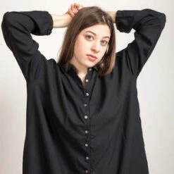 – Oversized shirt dress with collar