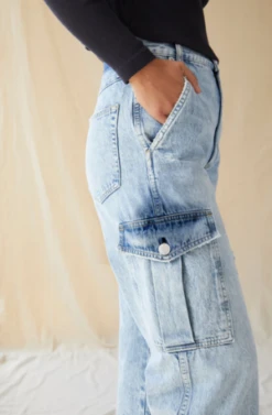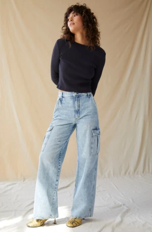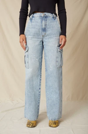 Fit: True to size | High-rise, wide straight leg pant with pleated cargo pockets | Zip fly with with a long inseam