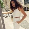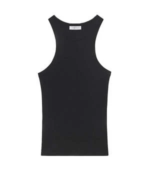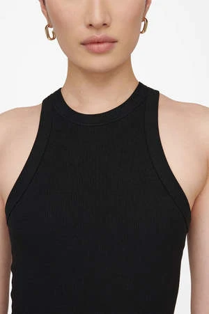 The Eva Tank in Black by Anine Bing is a fitted ribbed knit tank crafted in a cotton-spandex blend finished with a high crew neckline for a clean look.