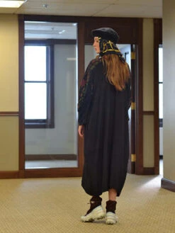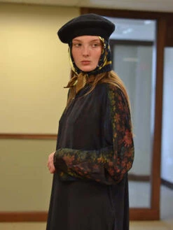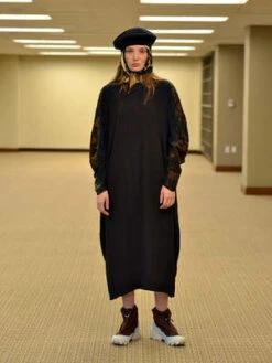 A new shape for Anntian, not as voluminous as the Big Dress, but looser than the Simple Dress. Rounded shoulder / sleeve with gentle gathers. Rear zip. Mid-calf length.