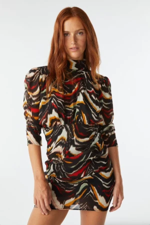 Contemporary lines for a glam look: the PERNEL short dress is just so charming! This long-sleeved style has a high neck and we love the pleats at the shoulders, waist and side. The dress is easy to wear to the office or for a night out: just add heels or high boots and a little jacket. For some contrast, pull on casual boots and a biker jacket instead!