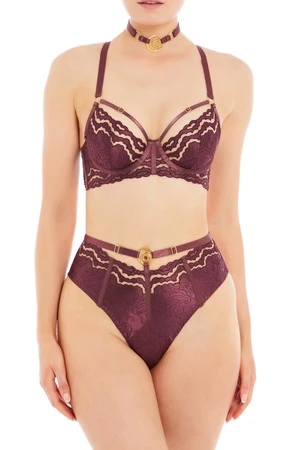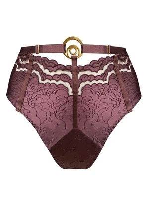 The Dala High Waist Brief creates the illusion of modesty at the front while daring to bare all in the back. Featuring luxurious embroidered satin applique with sheer details and multiple adjustable straps, this high leg design is guaranteed to flatter from every angle. Wear with any Dala Bra for a dreamy look.