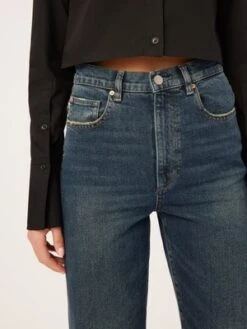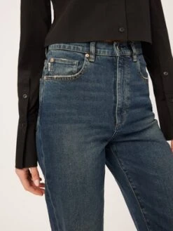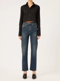 The Enora Straight Cigarette is an ultra-high rise fit with a 29″ inseam that is designed to provide a relaxed, vintage look. The Broadbay wash is a deep indigo hue with a genuine worn-in feel, complete with brushed silver and matte copper hardware, multi-colored stitching, a clean hemline, and a black back patch.