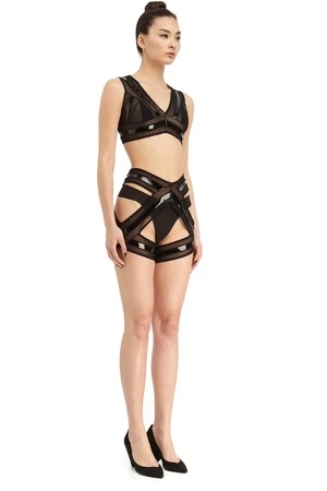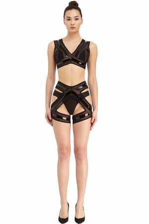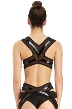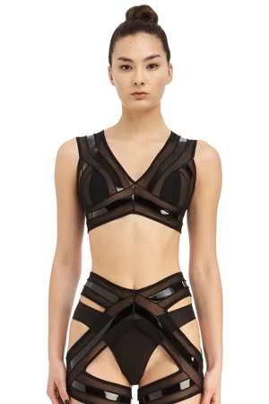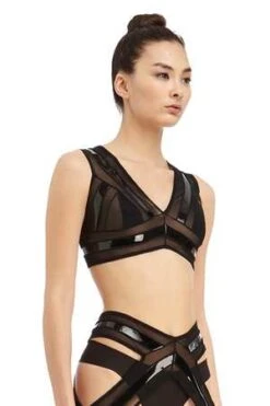 This high gloss and mesh combination bra top is straight from our galactic queen dreams.