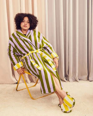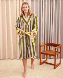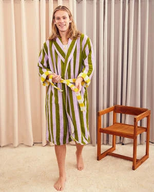 Cotton terry bathrobe with shawl collar, patch pockets, and tie. 95% cotton terry, 5% polyamide, 430 GSM. This item is Oeko-Tex Standard 100 certified (no harmful chemicals were used during production). Made in Portugal.