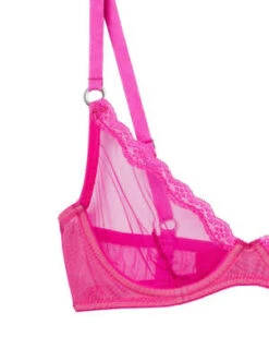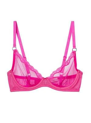 Sheer demi bra with unpadded lace-trimmed cups. Offers support and a whole lotta flirty fun.