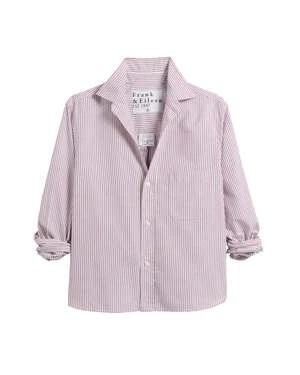 The Silvio Button Up in Wine Stripe by Frank and Eileen a laid back take on modern Italian tailoring featuring a petite square fit and exaggerated back pleat crafted in an heavyweight, cotton, Italian Oxford fabric.