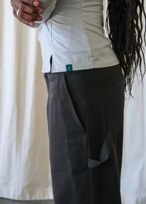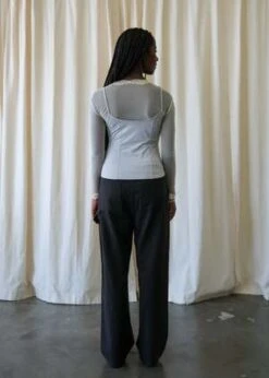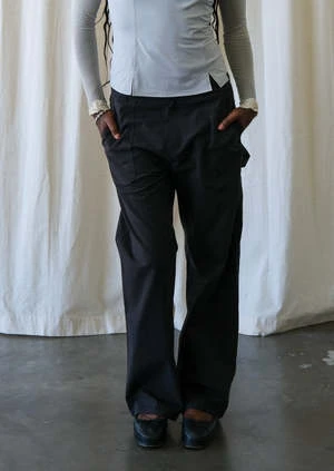 The Cotton Everything pants, a low rise everyday cotton trouser. With a hidden invisible zipper and metal hook and bar closure. Front and back pockets.