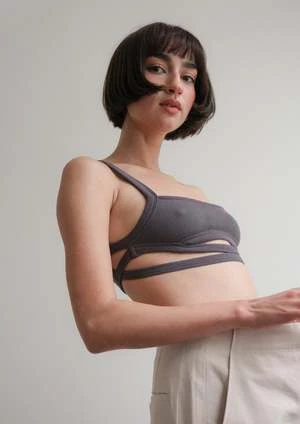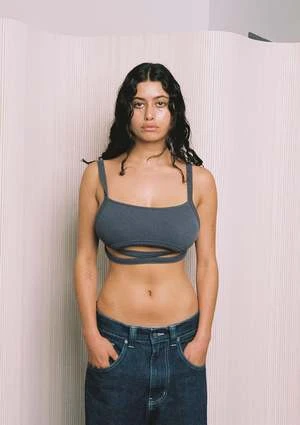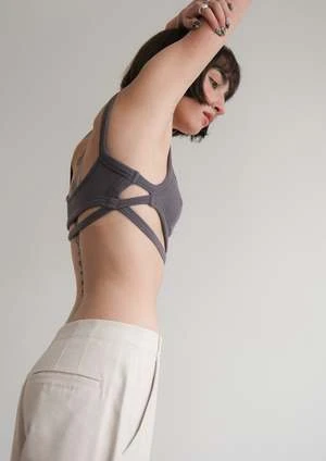 The Garner, a versatile strappy knit bralette. Made in our deadstock textured terry knit.