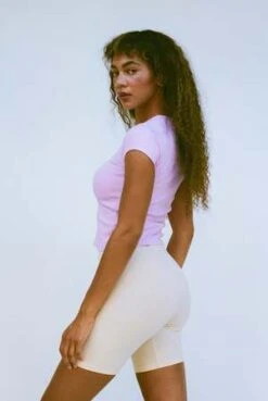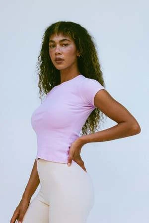 A super soft short-sleeve baby tee made from cotton baby rib. Flattering and form-fitting, its the perfect length to tuck into a high waist, or not. Made in USA with locally sourced materials.