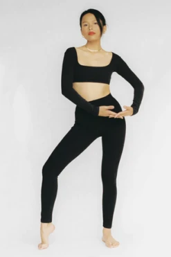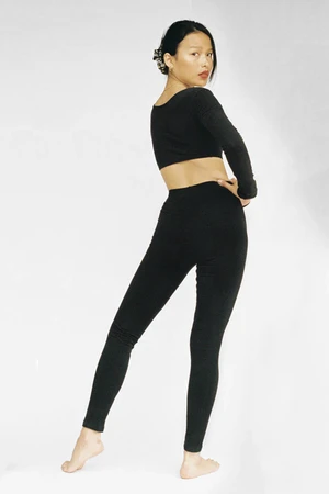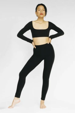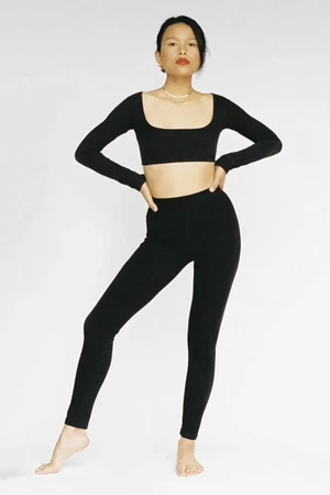 Full length leggings featuring a super high waist and a wide, flattering elastic waistband. Made in USA from locally sourced, high-end cotton spandex jersey that’s lightly sanded for a subtle velvety hand feel.