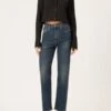 Mid-rise jeans with a curved balloon leg that tapers towards the ankle, made from a mid-weight organic cotton denim. The jeans feature elastic at the waistband, and have a relaxed fit. They have front and back pockets, and are fastened by a concealed front fly with nickel-free tacks.