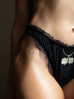 The Amuse Panties invites you to let go and explore your own sensuality. Feeling in luck or simply a gambler at heart, wear the amuse panties and explore your playful dreams. Its delicate black mesh and sheer back, signature style of Lorette Lingerie, creates a romantic look that simply looks good on every bum.
