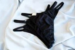 Like a thong… only better. Inspired by island summers in teeny bikinis, the Tanga is a mid-rise string-style that can be worn higher on the hips or straight across to your liking. She’s cut high on the legs for a lovely, lengthened silhouette. A touch of coverage in the back creates an elegant, oh-so-flattering arch that accentuates the bum. Made with subtly sheer, lightweight, 100% organic cotton jersey, she’s excellent for travel and everyday wear. The Tanga Trio pairs beautifully with the Toujours Bra.