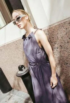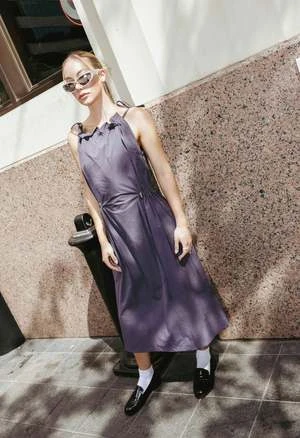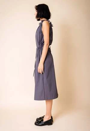 *With neck tie and waist strings cinched you can adjust the dress to fit your body.