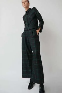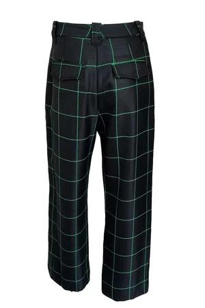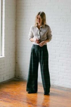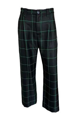 This pant by No 6 features a straight, slightly flared pant leg, front pleats, mid-rise, and side and half welt back pockets.