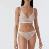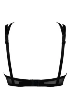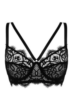 This stunning bra combines the elegant shape of full-cup coverage with modern edginess of the strapping on the dcolletage.