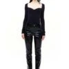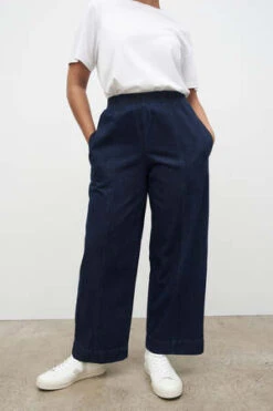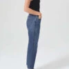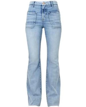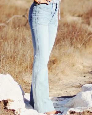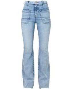 The Wanderer Flare is our spin on the iconic 70’s flare modernized for a new decade. This style features a high-rise contour waistband, sailor-inspired patch pockets and a belled leg opening with a blind hem stitch detail. The fit is form-fitting and snug through the waist and hips then bells out right above the knee. We embroidered our iconic sun logo on the wearers back pocket. All of our jeans offer stretch so unlike the 70’s classics you can actually breathe in these. What modernizes this style is the way we shaped our leg, creating the knee break higher and extending the inseam to 33″ to fit over your sneakers or wedges. Without shoes, these jeans are long, but its intentional. Hem if you wish or rock it long.