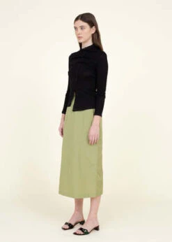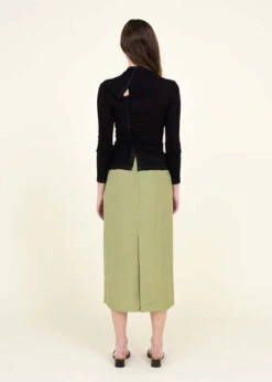 Tencel blend rib black top from Rejina Pyo is designed for a close fit and crafted with a draped, asymmetric silhouette and slit at the back.