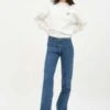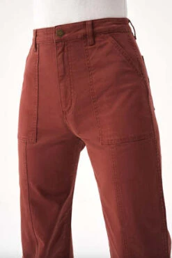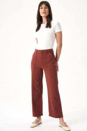 Super high rise wide leg jean. Features carpenter pocket details, specially angled and shaped in the back for a truly peachy looking butt. The stretch drill fabric, means you get the look of a rigid denim with a little bit of stretch!