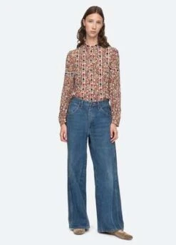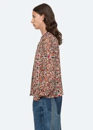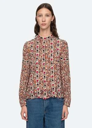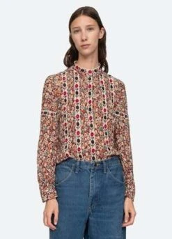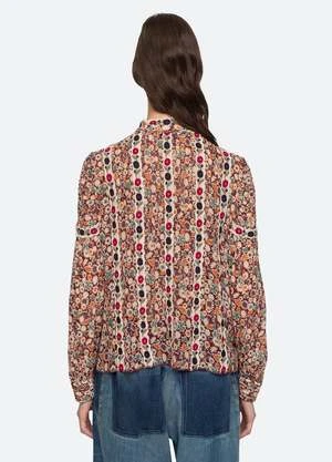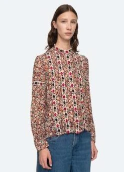 The Fernande long sleeve top features a multi colored floral print with trim detailing.
