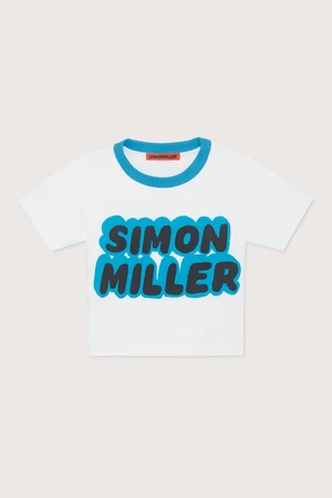Ribbed retro crewneck crop top with custom Simon Miller graphic.