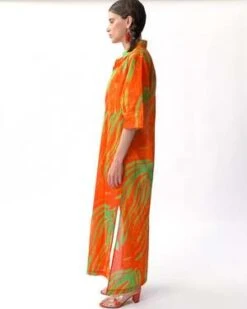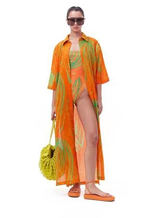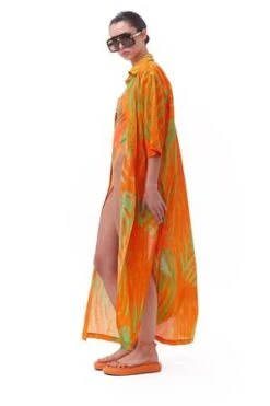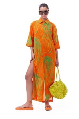 Button up collared cotton gauze dress with left pocket detail and side slits. Can be worn as a dress or a beach cover up.