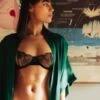 The crocodile lace high-cut thong with sheer mesh panels outlines your curves for the ultimate leg line. Wear with the matching balcony or bandeau soft bra.