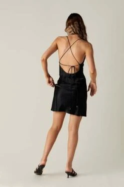 The black dress everyone should have in their closet. The Third Form Crush Bias Cowl Mini Slip Dress features a cowl neckline, crushed texture, and cut away back enhanced by the fine interchangeable straps.