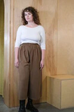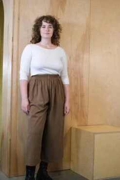 Who doesn’t love a pair of easy oversized lounge pants? The Aretha Pants from Toit Volant are sure to keep you comfy wherever your day may take you. This style features an extra high rise, elastic waist, roomy wide legs, and an easy cropped length.