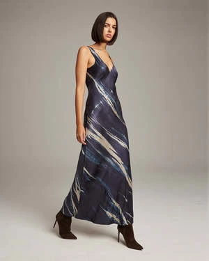 Bias cut silk charmeuse double V slipdress elegantly drapes on the body. This perfect basic can be worn for life, dressed up, or dressed down, for the perfect effortless ensemble.