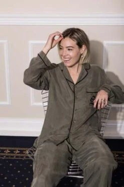 Elastic waist, straight leg pant with an all over crochet like mesh stitch. This is a medium gauge, substantial knit but is slightly sheer at certain angles due to the mesh stitch